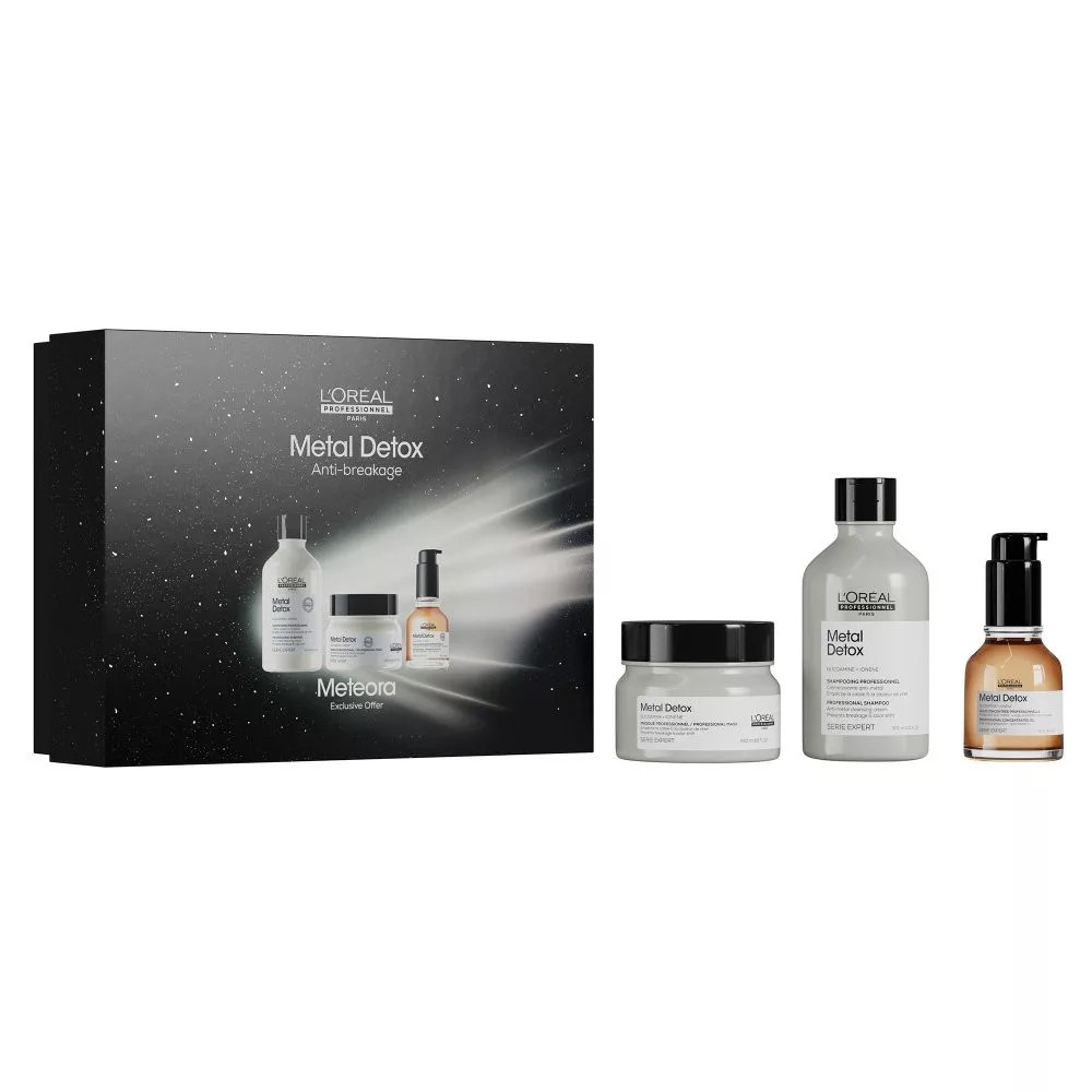 A szett három terméket tartalmaz: a Metal Detox Shampoot, a regeneráló maszkot és a védő hajolajat. A sampon eltávolítja a szennyeződéseket, és friss, tiszta alapot ad a hajnak. A maszk mélyen táplál, erősíti a hajrostokat, és megakadályozza, hogy a fémrészecskék újra bejussanak a haj szerkezetébe. Végül a könnyed olaj selymesen puhává és fényessé teszi a hajat anélkül, hogy elnehezítené, miközben akár 230 °C-ig hővédelmet biztosít.